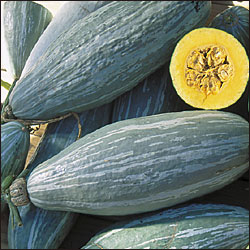 Indian Doll features a deep-orange color and deep-ribbing with an almost square appearance. Indian Doll's deep-orange, sweet flesh can be used for pies, soup, and gourmet culinary delights. Full vine plant habit. This pumpkin goes well with autumn decorations. Excellent Powdery Mildew tolerance. 20 to 24 pound fruits. 100 days.